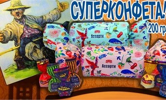 Первый – это новая конфета «Суперконфета», которая будет дарить Вам радость намного дольше, ведь она весит целых 200 граммов!