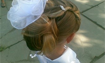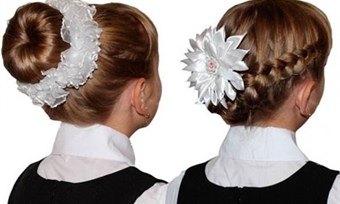 Вот такие вот шикарные причёски помогут Вашей юной школьнице быть в центре внимания. Да и белые банты — незаменимый атрибут этого праздника.