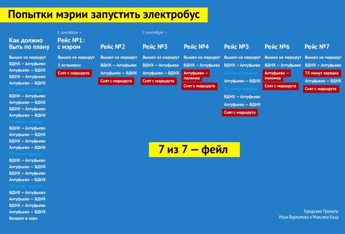 Казалось бы, будущее наступает. Пусть даже только в Москве. И вот, 1 сентября в путь отправился один электробус, а 3 сентября должны были 7. Однако, чудо-общественный транспорт ломался каждые пару часов. Да что там, он сломался с самим Собяниным на борту. Поэтому, многим пассажирам пришлось добираться на старом добром и надежном троллейбусе.