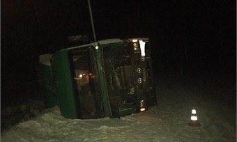 Вечером того же дня на трассе Тотьма – Нюксеница – Великий Устюг молодой водитель фуры не смог справиться с машиной по причине блокировки задних колес. Большегруз съехал на обочину и упал. Водитель был госпитализирован с травмами.