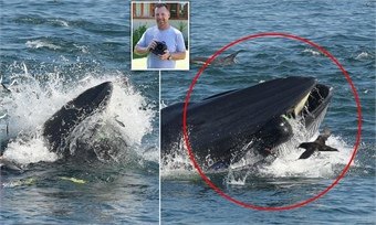 Дайверы погружались в воду и фотографировали рыб. Герой ролика снимал акулу, когда рядом неожиданно вынырнул огромный кит. Мужчина оказался в темноте и ощутил давление в районе бедра. Инстинкт самосохранения подсказал ему, что нужно задержать дыхание, поскольку вместе с гигантским созданием он окажетстя глубоко под водой. К счастью, экстремалу удалось вырваться, ведь киты питаются только планктоном.