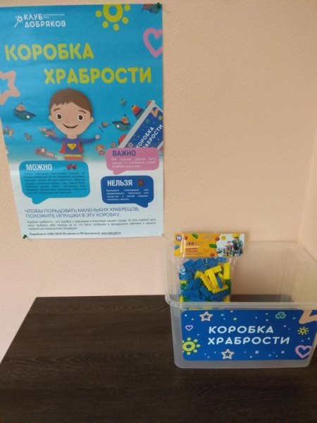 Вчера мы писали о том, что «Клуб добряков» провел в поселке День красоты для мам с больными детьми. Клуб собирает игрушки для Череповецкой детской городской больницы. Игрушки расставляются в палатах в специальных контейнерах с названием «Коробка храбрости». Ребенку тяжело находиться в четырех стенах, да еще и с уколами-лекарствами. Коробки помогают детям найти интересное занятие и весело провести время между процедурами.
