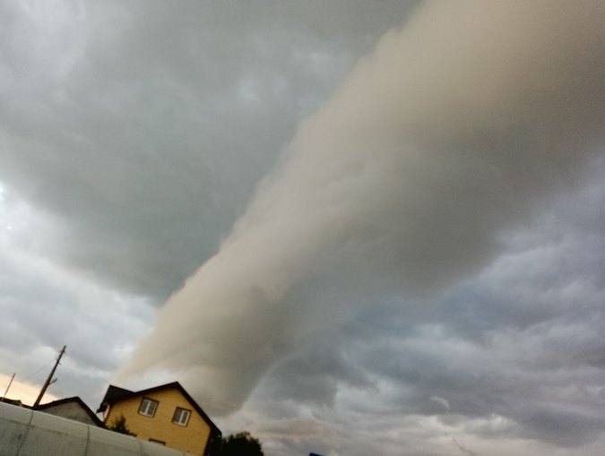 Пользователи соцсетей поначалу не поняли, что это за облако, однако, если приглядеться, то можно увидеть полноценные завихрения, которые присущи смерчу, пусть и не слишком разрушительной силы...