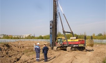 На настоящий момент идет формирование котлована. Грузовики увозят грунт, а специальный трактор регулярно чистит дороги от грязи. Также параллельно с «земляными» работами идет тестовая установка свай. Они простоят некоторое время, а после — подвергнутся динамическим испытаниям ради выявления непригодных мест для забивания свай. Около 300 опор будут поставлены на объекте.
