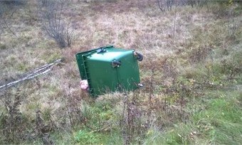 В паблике «Подслушано в Кадуе» автор выложил фотографии мусорного контейнера, уныло валяющегося в овраге, что в конце ул. Терешковой. Пользователи посетовали на то, что контейнер не был закреплен с остальными «соратниками» и высказали свои предположения по поводу причины столь необычной «миграции» бака на колесиках.