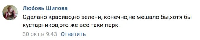 Сами шекснинцы также заметили, что парк выглядит слишком «голым» и пустым, хотя само его название должно наводить на мысль о густых зеленых деревьях и кустах: