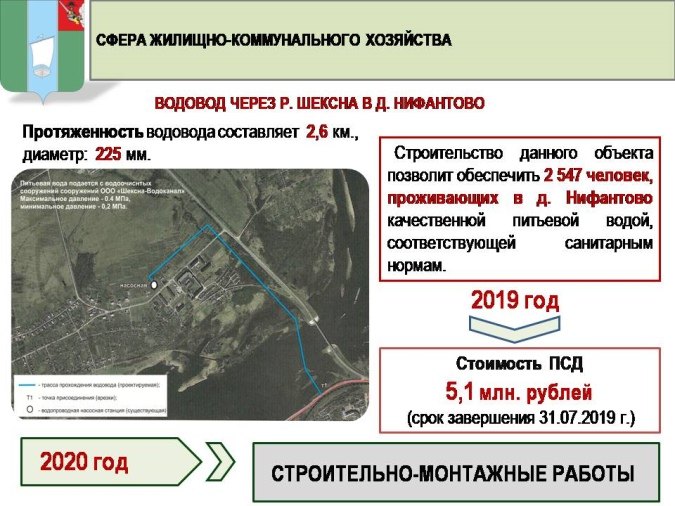 Глава района Виктор Кузнецов опубликовал на своей страничке ВК информацию о начале торгов по выбору подрядчика, который займется строительством водовода через реку Шексна до дер. Нифантово. Источник передает, что объект является технически сложным для реализации: его протяженность составит около 2 км, а большая часть будет проложена по дну реки.