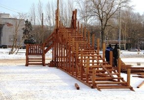 Первая большая горка, высота которой 5 м, установили в Череповце на площади Молодёжи. Сегодня горку заливали водой, а использовать аттракцион по прямому назначению можно будет уже завтра.