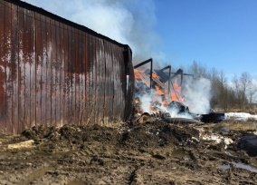 Пожар начался днём 11 апреля в деревне Прогресс. Загорелся одноэтажный ангар для хранения льнотресты (льняная солома, обработанная термическим, биологическим или химическим путём).