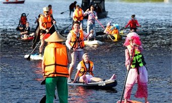 В Череповце состоялся первый сапсёрфинг-фестиваль, в котором приняли участие 115 человек. Все они оделись в карнавальные костюмы.