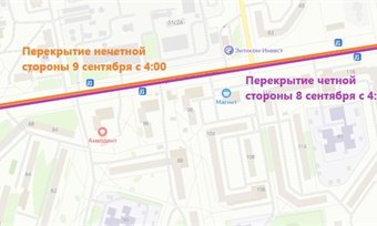 8 сентября будут перекрыты для асфальтирования две полосы по направлению к Юбилейной и въезды на прилегающие территории с этой стороны.