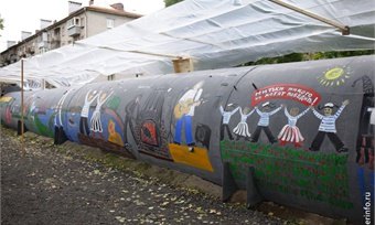 «Мы расписывали несколько автобусов, троллейбусов, пивных ларьков, лестницы в детских домах, но в школе и на улице работаем впервые, первый раз расписывали такую длинную трубу. В итоге на месте тира получился веселый арт-объект. Здесь река Шексна, где сидит еще совсем юный Саша и пишет свои стихи, он смотрит на портовые краны, мост. Шексна потихоньку перетекает в Неву, потом его встречают „Митьки“. Дальше — уроженка Череповца, первая женщина-водолаз Нина Соколова, Виктор Цой и котельная „Камчатка“. Затем фестиваль, где я первый раз увидел выступление Саши Башлачёва. Он уникальный певец!» — поделился художник, основатель группы «Митьки» Дмитрий Шагин.
