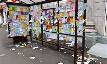 В пятницу патруль полиции заметил двух молодых людей расклевающих рекламные объявления на автобусной остановке.