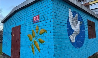 На трансформаторной подстанции на Советском проспекте студенты училища искусств нарисовали голубя мира.