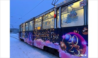 На улицы города металлургов вышел украшенный к новому году общественный транспорт: гирлянды снаружи, мишура в салоне и Дед Мороз за рулём. Всего на маршрутах будут работать пять светящихся автобусов и один трамвай.