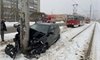 В Череповце иномарка въехала в столб Движение трамваев было парализовано