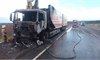 Грузовик сгорел на трассе в Вологодской области Грузовик сгорел на трассе в Вологодской области